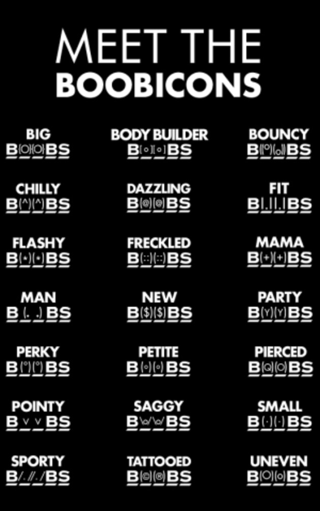 The latest run features the word 'boobs' in differing versions; including small, big and bouncy.