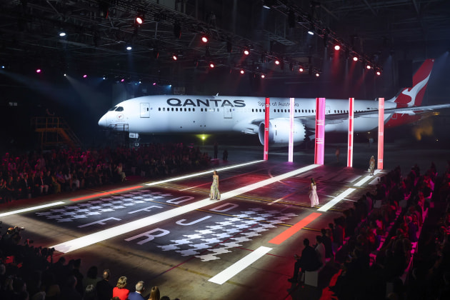 David Jones and Qantas Frequent Flyer came together to mark their new loyalty partnership, hosting the first-ever runway show inside Hanger 96 at Sydney Airport.