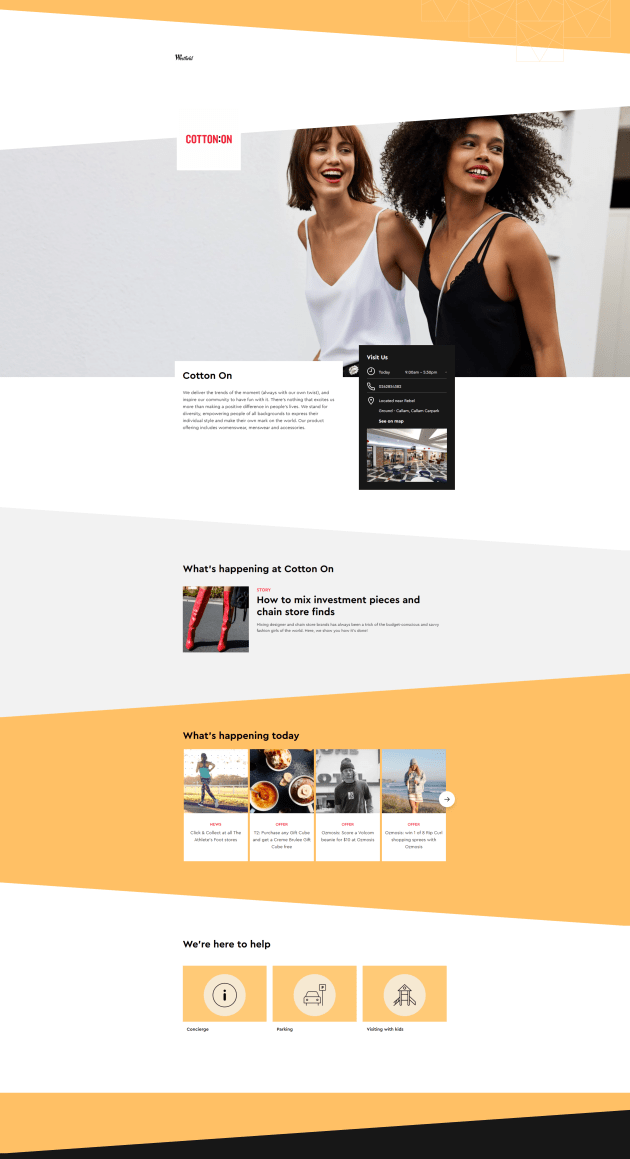 This function allows retailers to bring their own personality, products and bespoke offering onto the site, complimenting the physical in-centre experience.