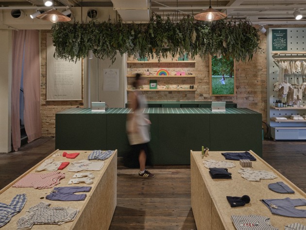 The flagship Balmain store deviates from the traditional retail space, offering a community kitchen with tea and water, dedicated feeding and changing areas and an expansive outdoor garden.