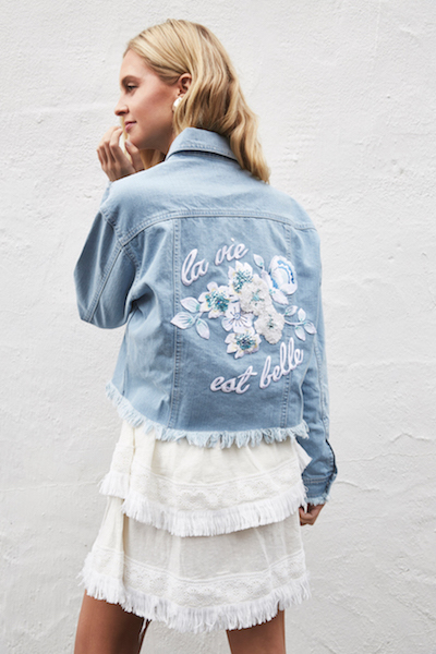 The Steele x Hatrick jacket is embroidered with a floral design and La vie est belle’ (life is beautiful) printed on the back, keeping in style with the #steeleGIRL look.