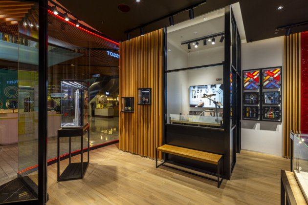 A central display unit in the store allows customers to explore key timepieces up close, while surrounding showcases highlight both heritage-inspired designs and the brand’s latest releases.