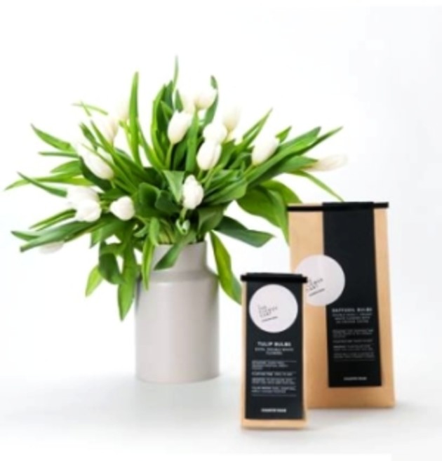 The wooden carts will operate from May 9 to 10, offering fresh white tulips and packaged bulbs to plant at home.